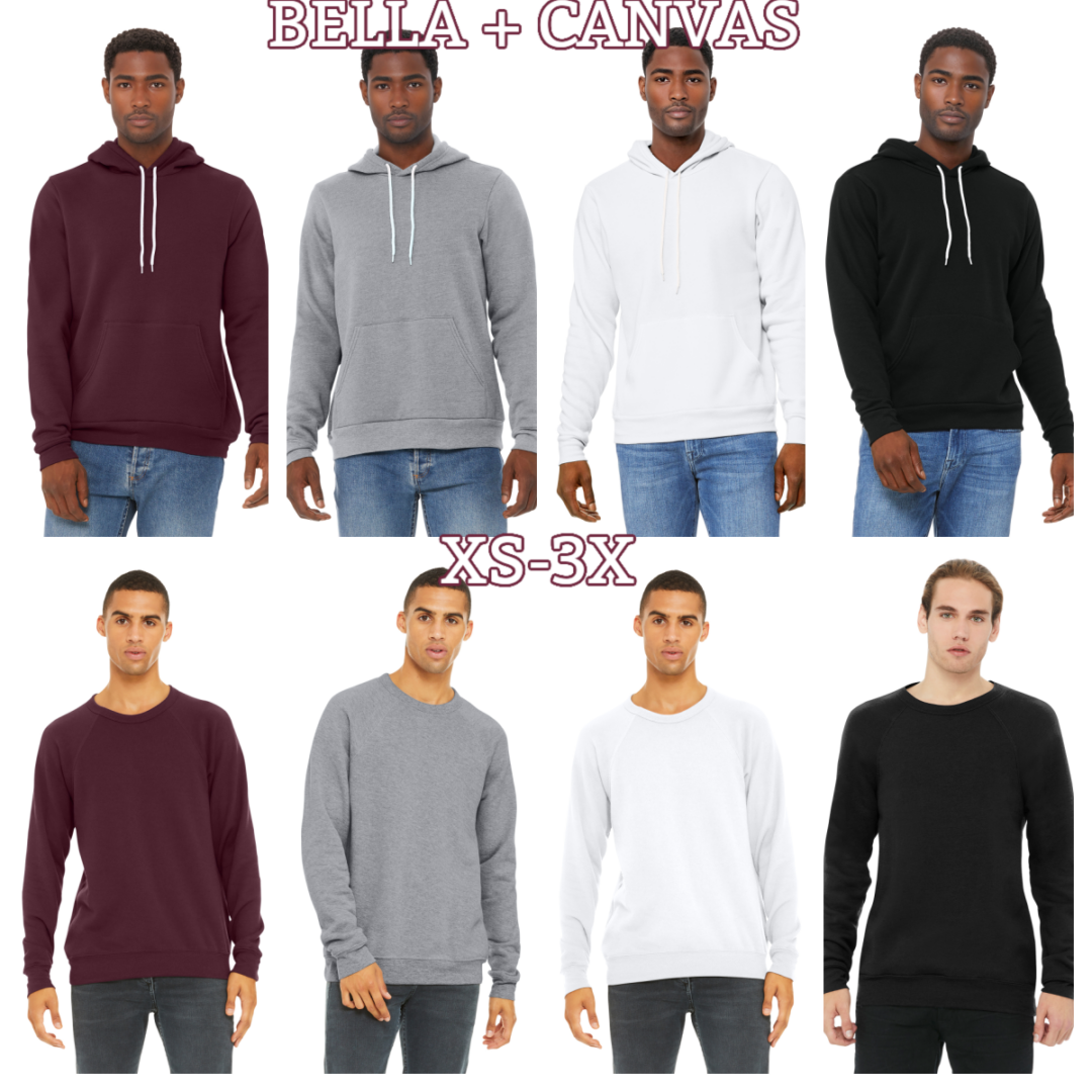 Unisex crew and hood are -true to size and Bella +Canvas brand.
